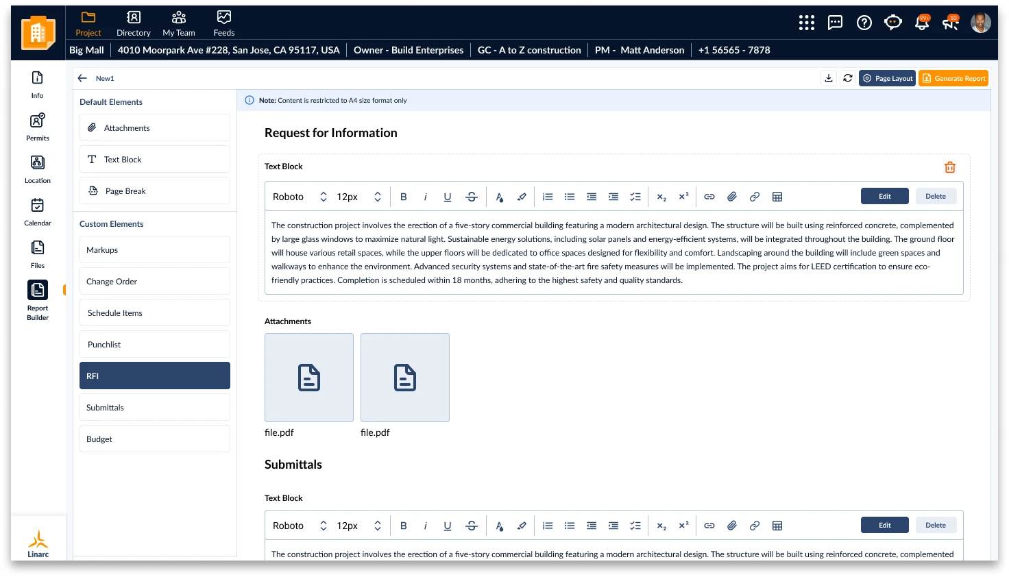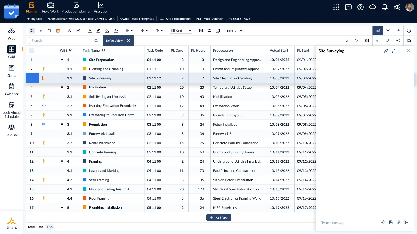 Real-time collaboration grids where teams discuss schedule line items, attach documents/photos, and flag risks instantly. Progress updates auto-publish to stakeholders, eliminating “Where’s that RFI?” chaos.