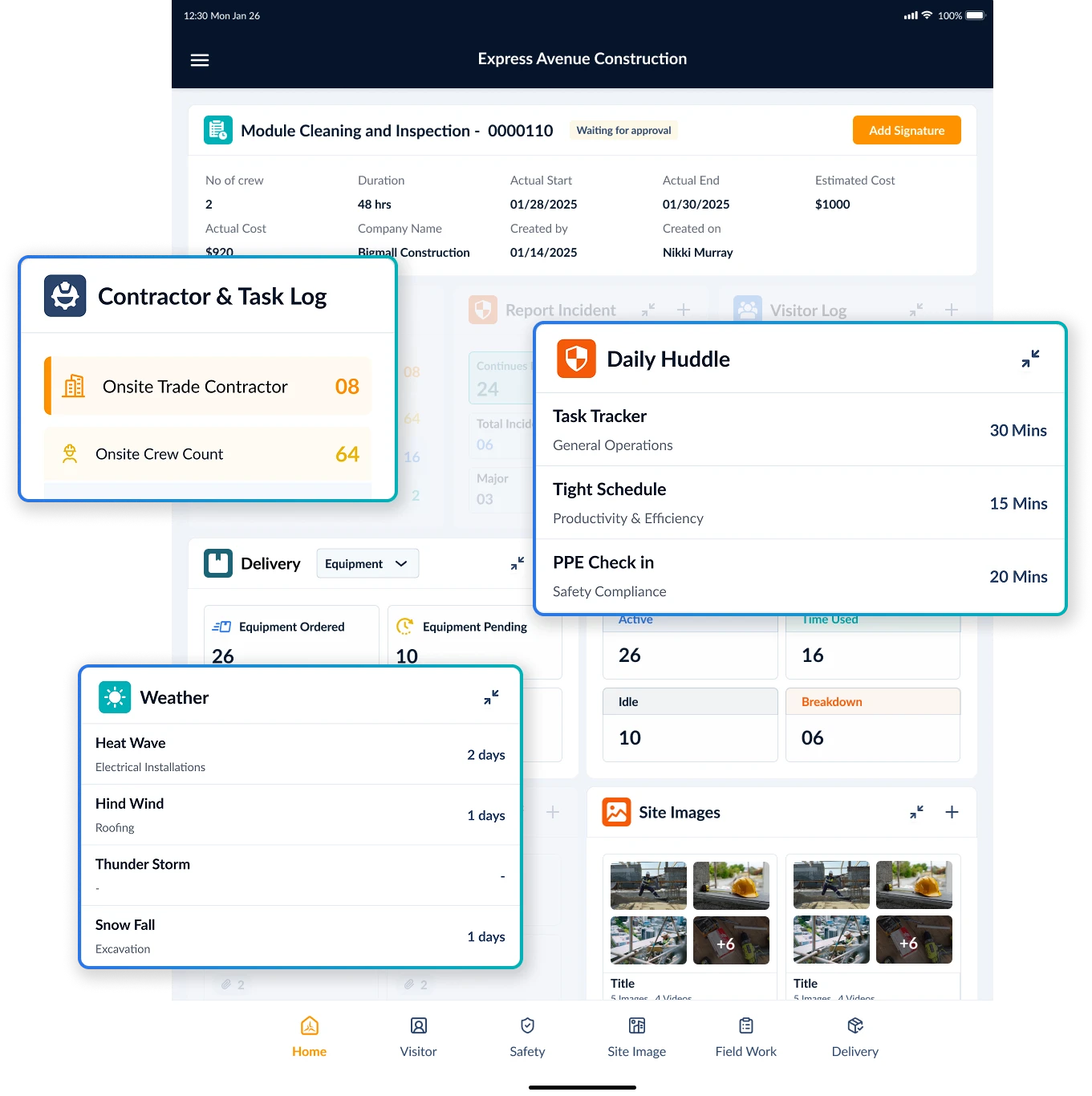 - Update in Real Time (e.g., adjust schedules when supers log delays).