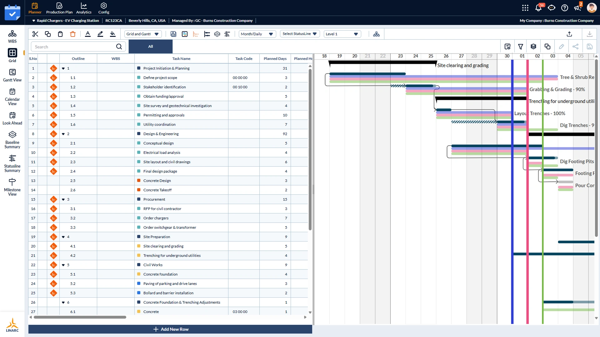 - Dynamic Critical Path: Linarc recalculates critical paths instantly when conditions shift, keeping plans accurate in real time.