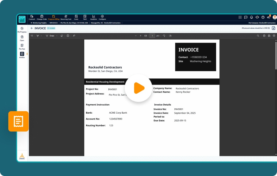 - Smarter Billing: Generate progress billings automatically based on completion percentages and cost allocations.