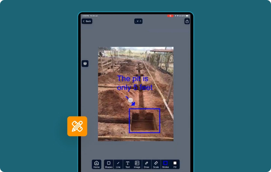 - Annotate with Precision - Use a variety of markup tools to highlight specific locations on photos and field images as needed.
