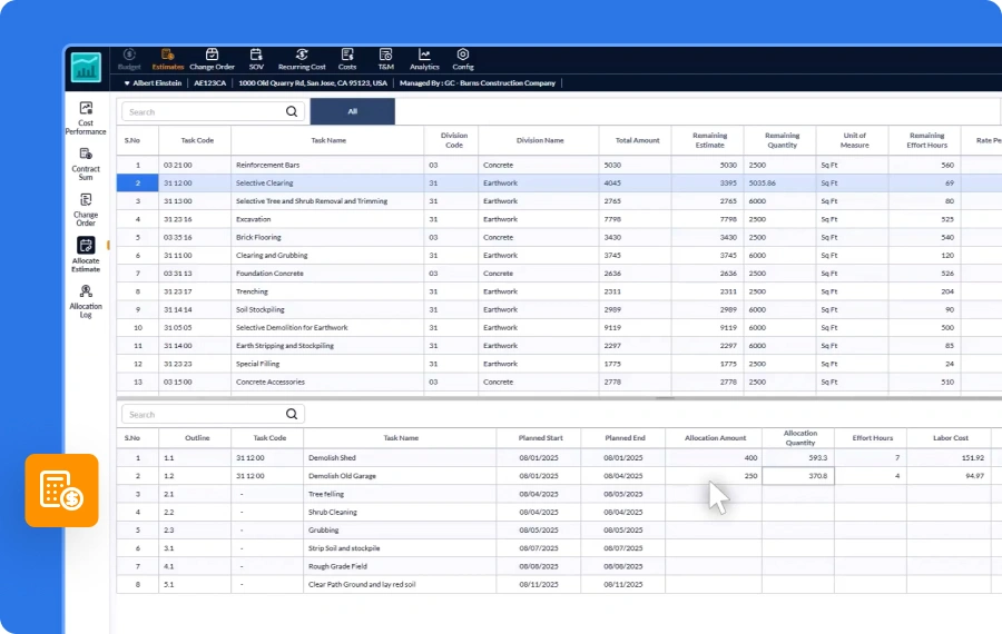 - Enable Accurate Cost Tracking - Distribute funds from locked estimate items across scheduled tasks, allowing for precise tracking and automated SOV generation.