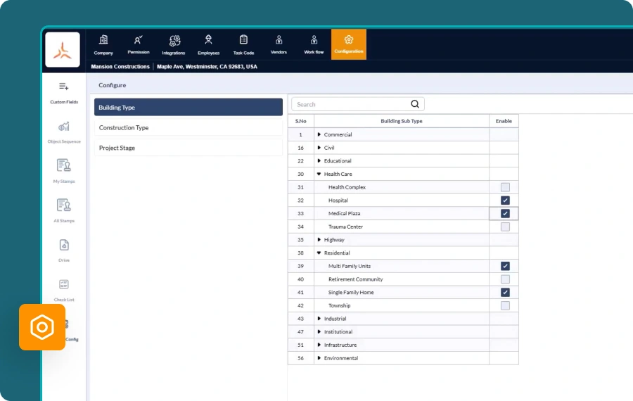 - Key Project Attributes Master Lists - Create centralized lists with predefined options for building types, job categories, and project stages.