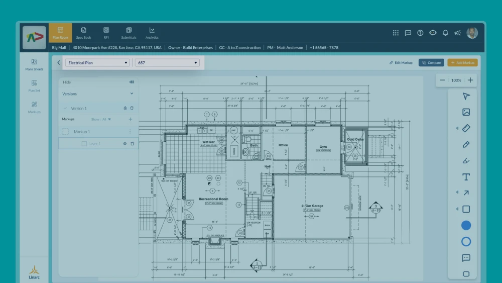 The built-in email feature enables you to seamlessly forward document items, such as RFIs and Submittals, to stakeholders or collaborators outside of Linarc at any stage for their review and input. This allows individuals who are not listed in the project directory to evaluate the item and contribute to its approval workflow. Upon receiving their feedback, you can update the item accordingly and proceed with its original approval workflow. As a prerequisite, these external users must be added as guest users to the project. You can attach a PDF version of the item reflecting its current stage for their reference.